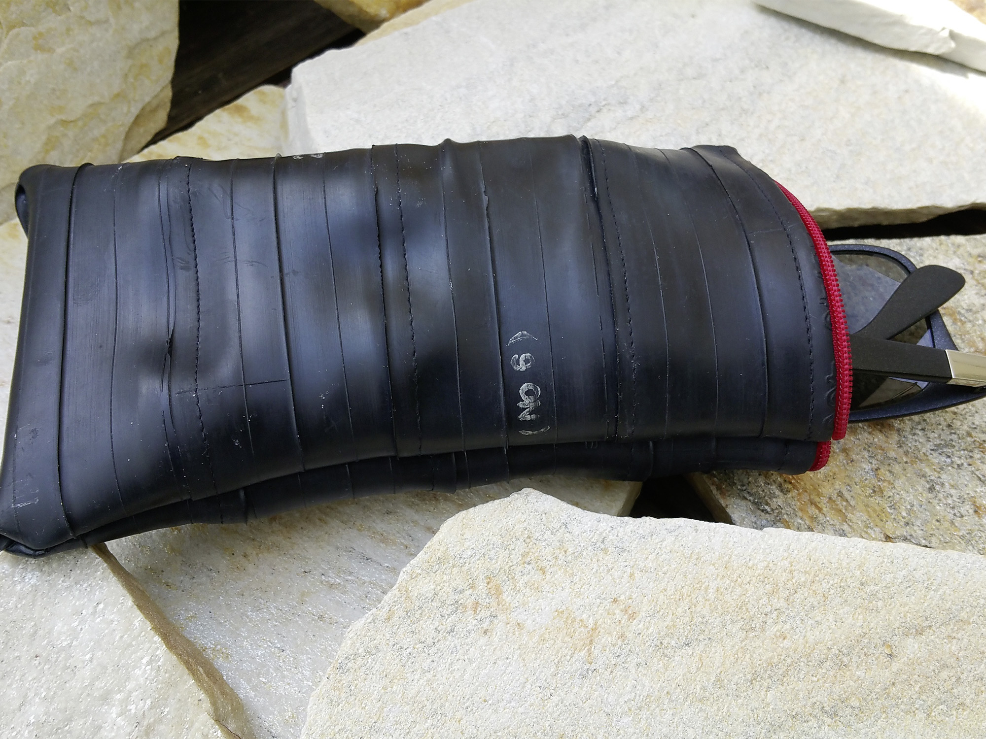 Ein ausgefallenes Geschenk aus Upcycling-Fahrradschlauch. Fahrradbegeisterte werden dieses Etui aus Schlauch lieben.