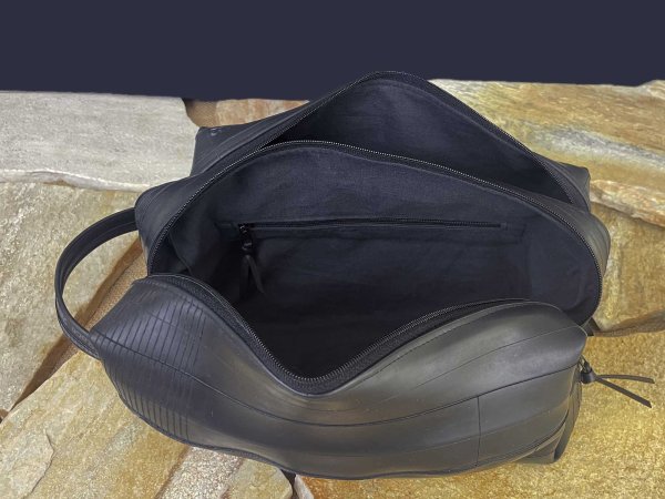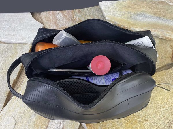 Mega geräumiger Kulturbeutel mit doppeltem Reißverschluss aus alten Fahrradschläuchen