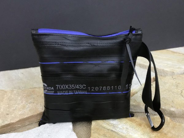 Lässiger Beutel/ Täschchen aus Upcycling-Fahrradschlauch mit Karabinerhaken, der/das sich vielseitig verwenden lässt: